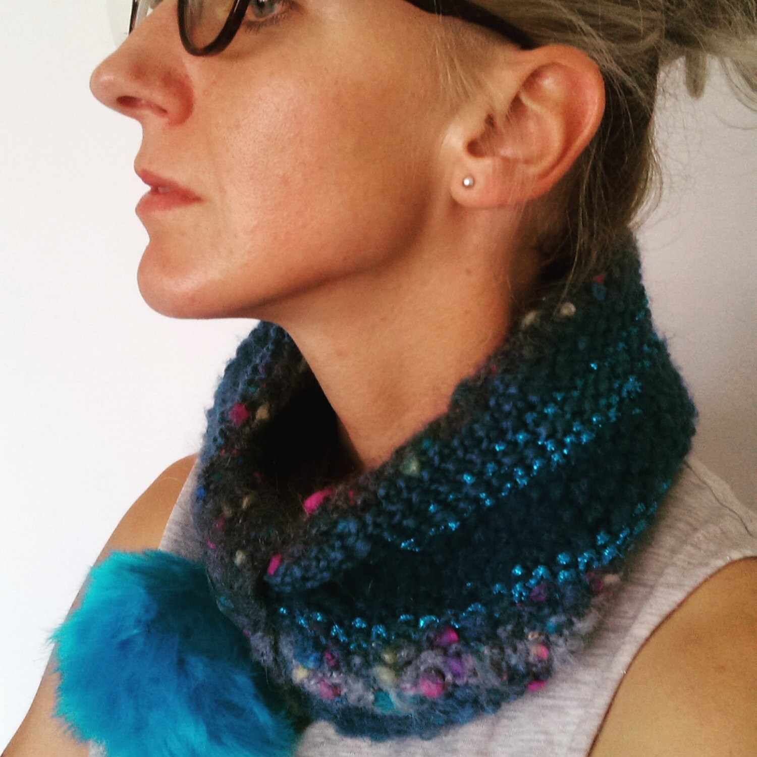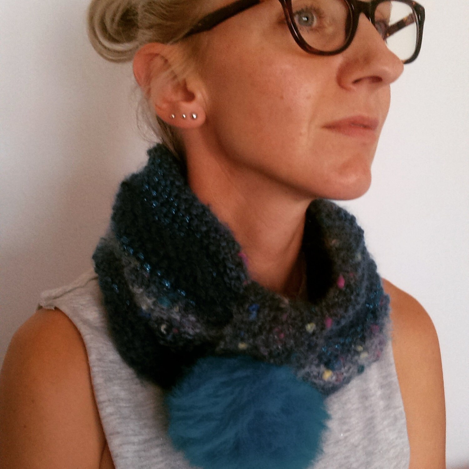 Fluffy Pompom Cowl, Moss sitch cowl, Casual cowl